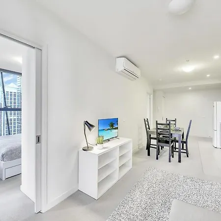 Das Apartment Stylish 2Br City Escape On Collins With Views bietet einen Wohnbereich und einen Patio und Annehmlichkeiten wie eine Klimaanlage und eine Waschmaschine. Hier gibt es zudem 1 Badezimmer. Ein Haartrockner, kostenlose Toilettenartikel und Badelaken sind ebenfalls vorhanden.